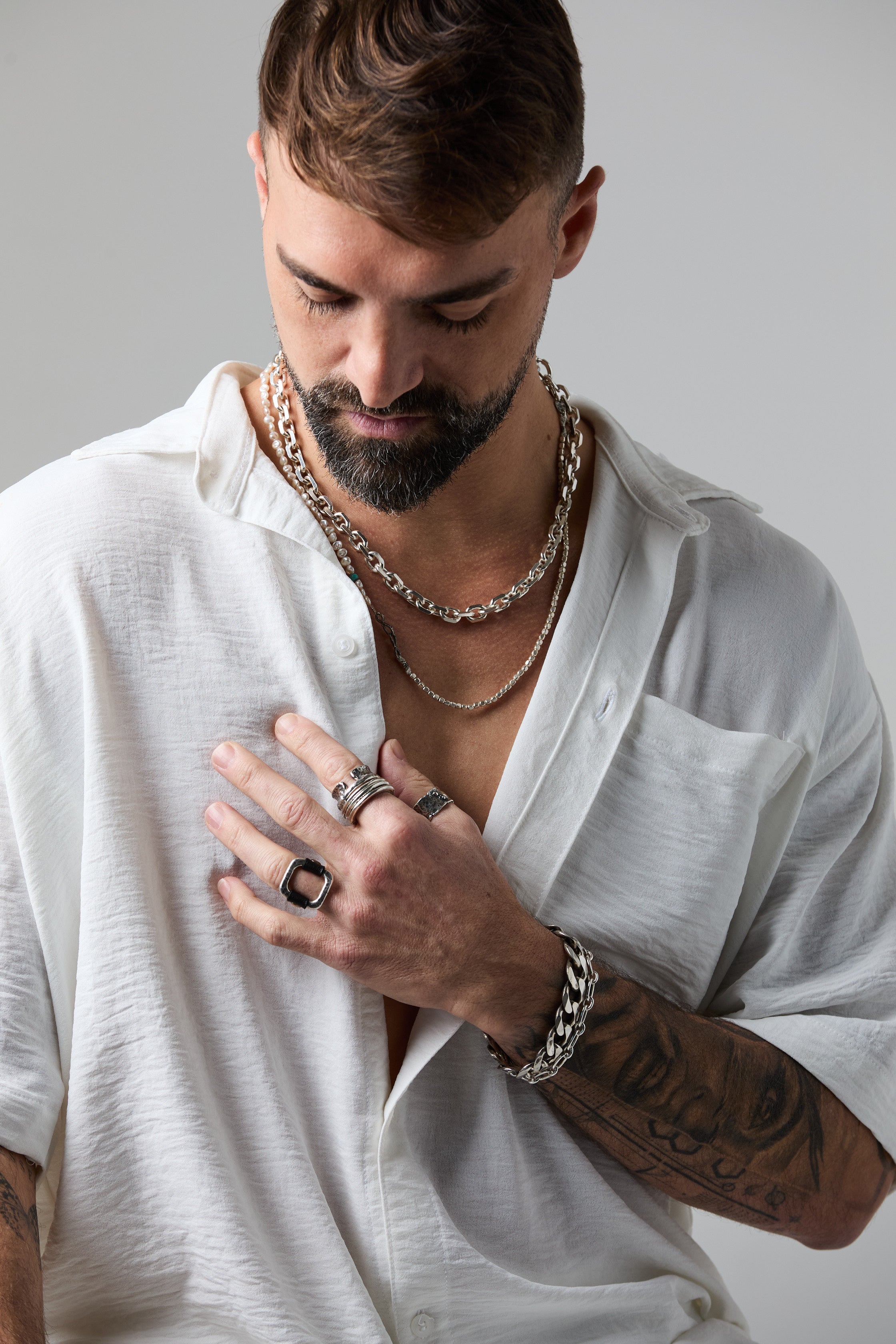 Harness the power of industrial elegance with this striking link bracelet. Crafted from rugged metal, its bold, interlocking design captures the essence of urban sophistication. Perfect for those who defy convention, this piece is a testament to strength and style, offering a unique edge to elevate any ensemble.