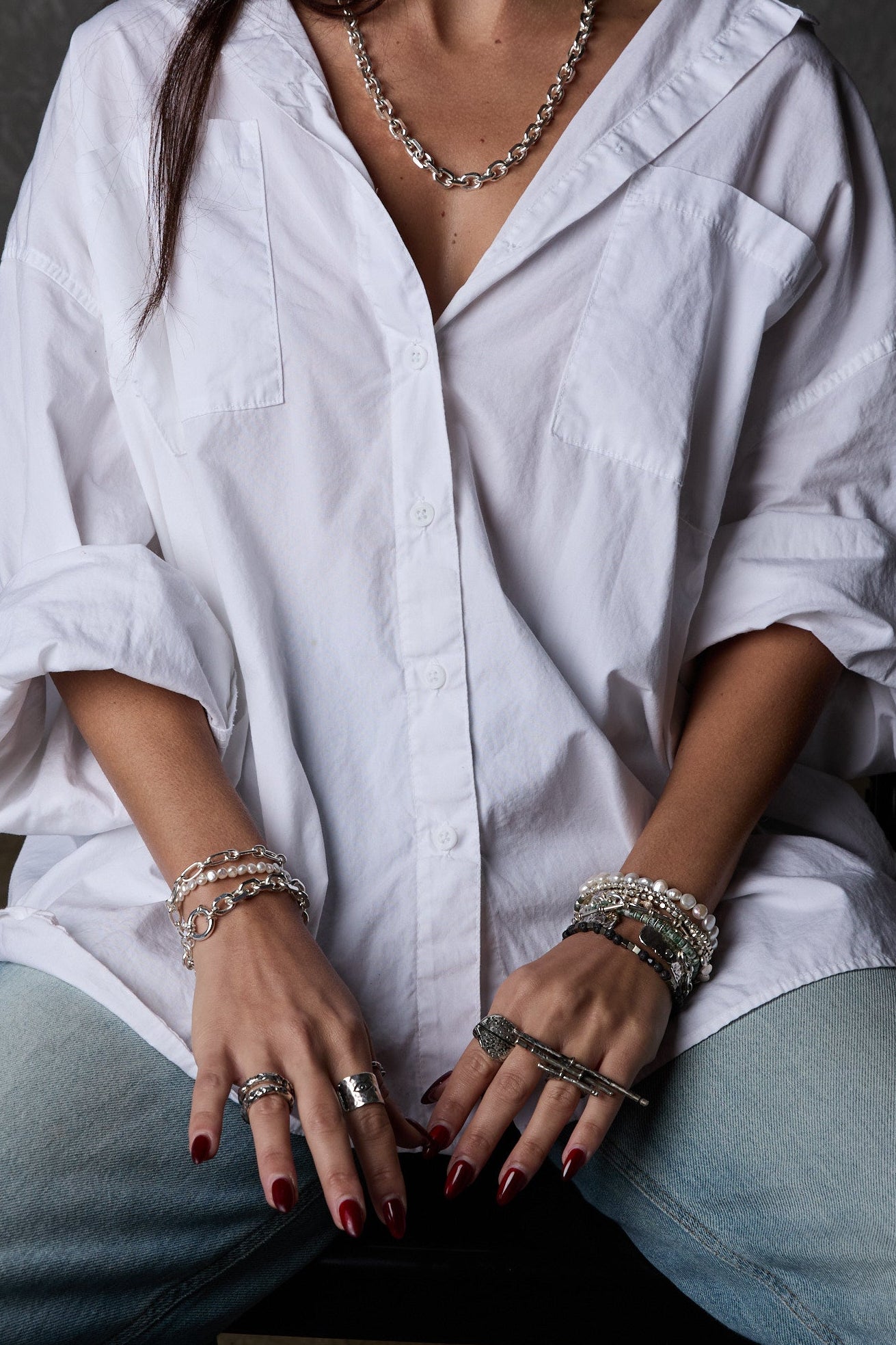 Wear it as your everyday base or stack it with finer pieces for contrast. Clean enough for minimal looks, strong enough to stand on its own.